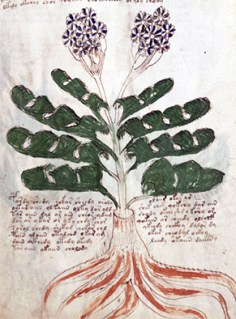 If an eidophonic system is depicted, the manuscript’s exotic plant forms may derive from species of cymatic/eidophone voice figures. But this begs the question as to why the plants are coloured – as any particle-based eidophone figures would certainly not be colour specific. Of course this is all an extremely tenuous speculation. All natural forms have harmonic characteristics (most notable in phyllotactic patterns) and are thus potentially translatable into sound. Besides, there’s scant historical record of any such vibratory practices occurring in antiquity, and certainly none this elaborate. However, it may be remembered that study of natural phenomena was strictly forbidden for centuries in Christendom, and beyond.