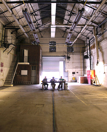 I’ve recently been editing a 2010 Oscillatorial Binnage performance of a piece titled ‘Variations for Rooms and a Tone’. It features multiple strands of acoustic microphone feedback steered by injections of carefully pitched oscillator tones, and destabilised by various other subtle treatments. The pitch of the feedback relates to the resonant frequency of the space(s). Conceptually, it may not sound entirely original (it certainly owes some debt to Alvin Lucier who explored this terrain), but its originality lies principally in the choice of venue – every space having its own unique cluster of tones: a ‘sonic fingerprint’. This particular 2010 recording was performed at a soon-to-be-demolished former bus depot in Neckinger, known as the Woodmill. It has unusual resonant cubbyholes allowing for many shifts of resonance.